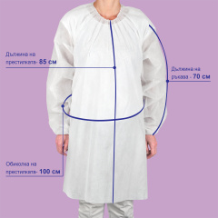 Aprons with long sleeves from NWPP. They are designed to be placed on clothing to protect against external contamination. Wide enough to cover any outfit, while at the same time being comfortable to wear. They have long sleeves that fit tightly around the wrist and protect clothing from contamination. Universal size, suitable for men and women.